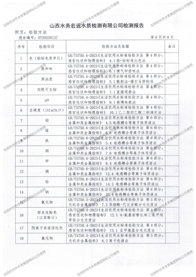 忻州城區(qū)公共供水水源水、出廠水、管網(wǎng)水、管網(wǎng)末梢水2025年5月份水質(zhì)信息公示