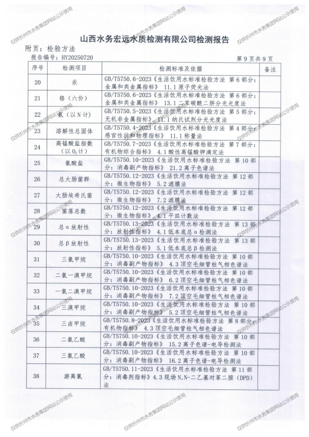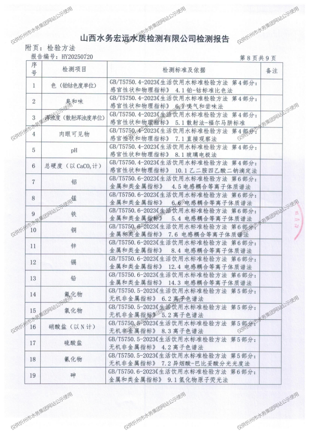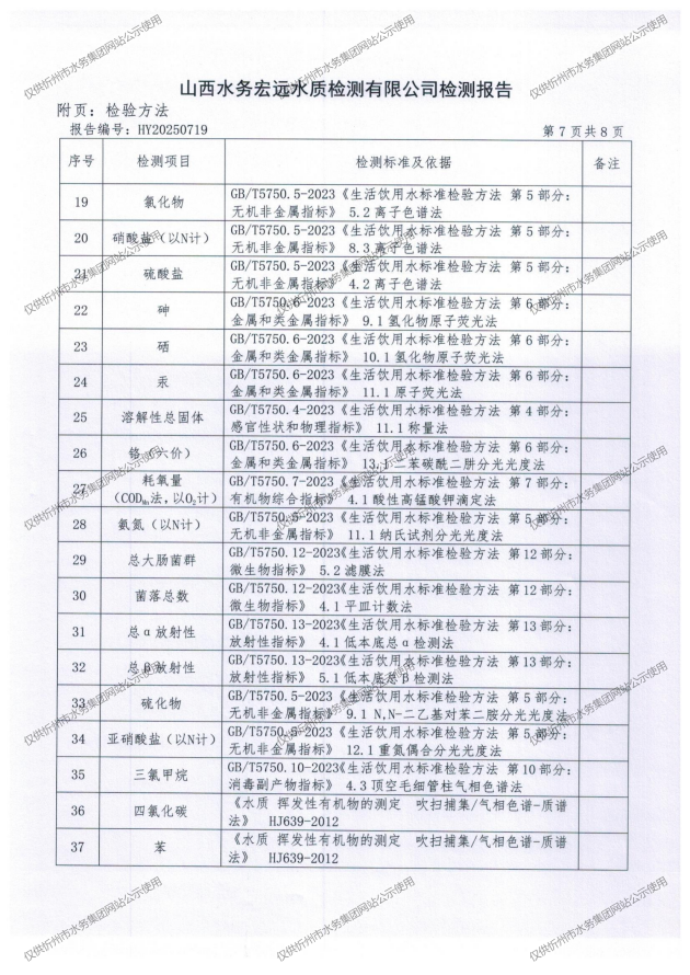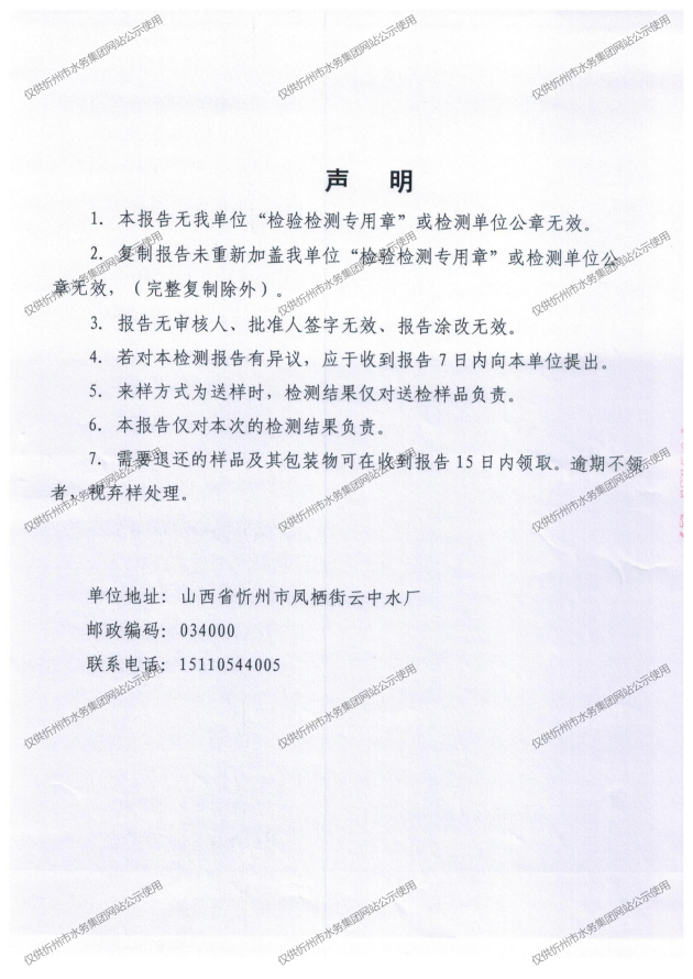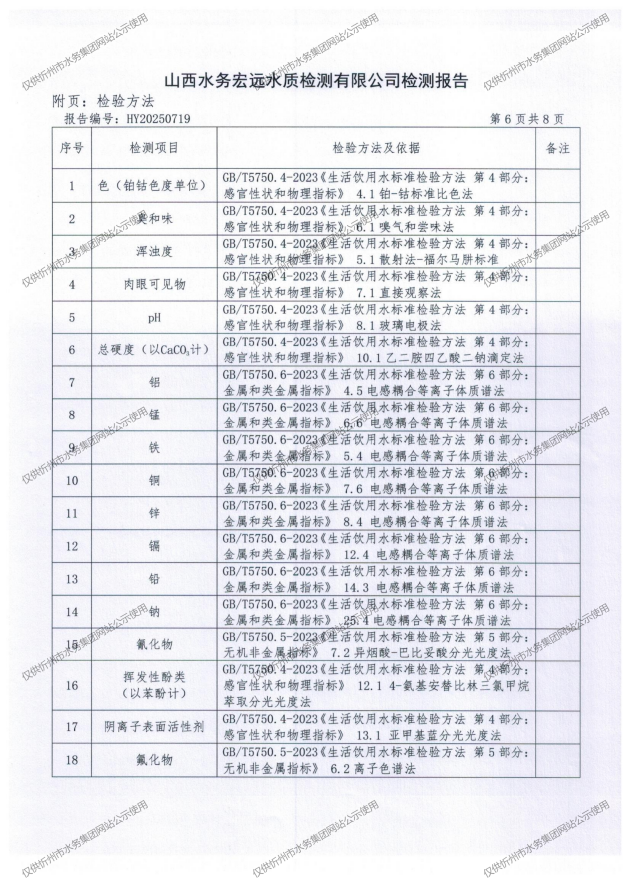 忻州城區(qū)公共供水水源水、出廠水、管網(wǎng)水、管網(wǎng)末梢水2025年8月份水質(zhì)信息公示