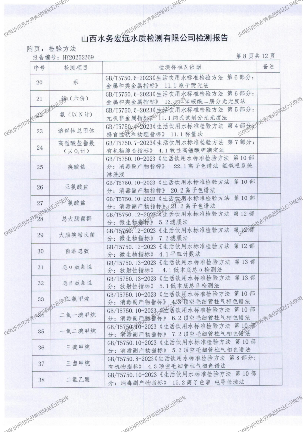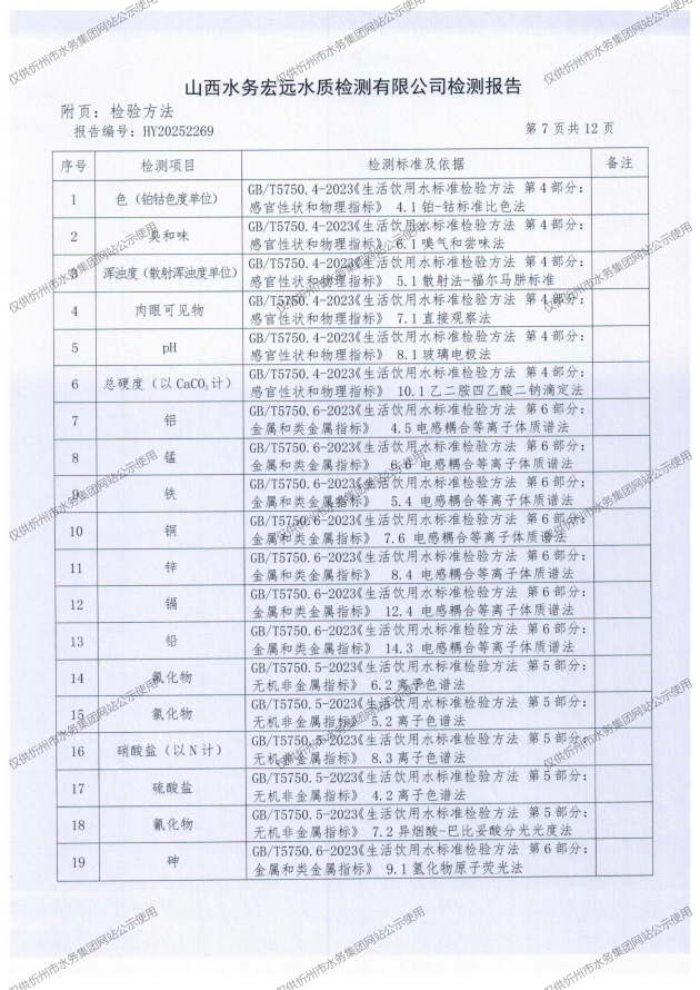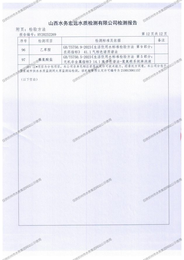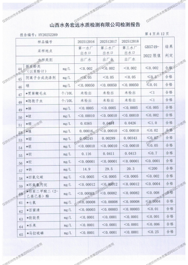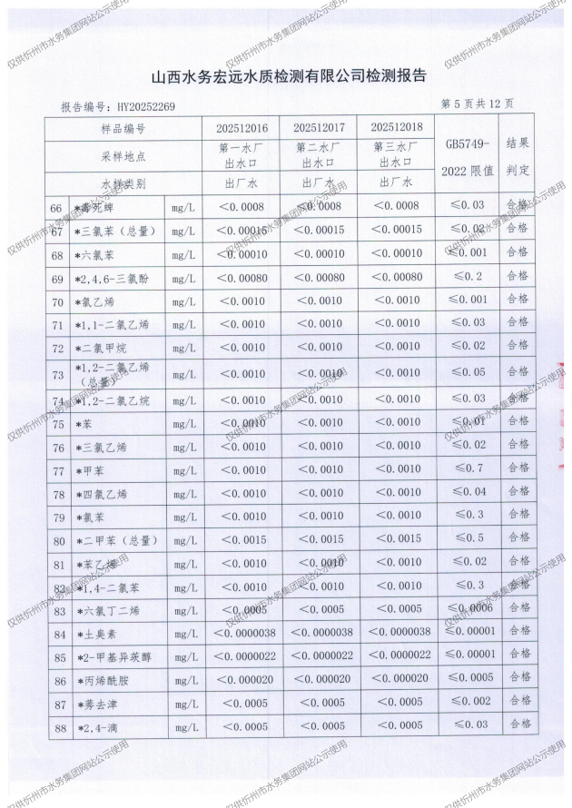 2025年忻州城區(qū)公共供水南水廠、三水廠、云中水廠出廠水97項(xiàng)水質(zhì)全分析